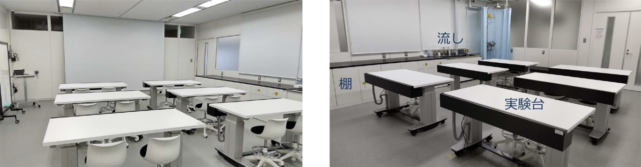 打ち合わせ、セミナー室、および実験室の機能を兼ね備えたスペースです。