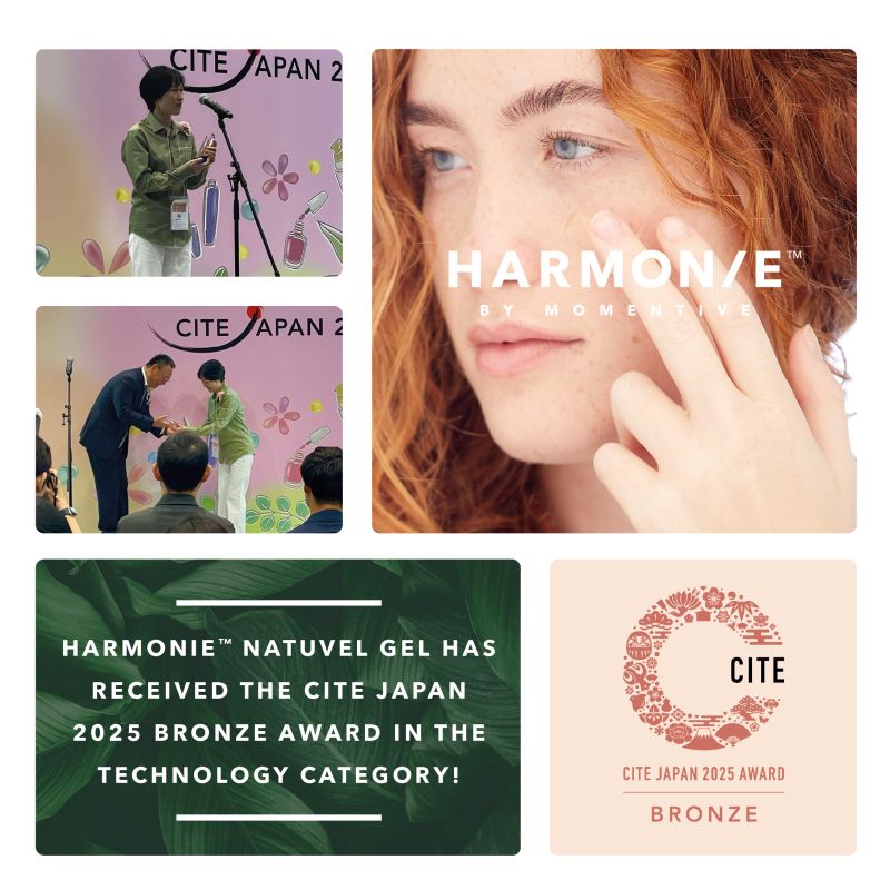本受賞は、CITE JAPAN 2025 テクノロジーアワードおよび米国 NYSCC Supplier’s Day 卓越成分賞に続くものであり、HARMONIE NatuVel gelの技術力と市場価値が国際的に高く評価されていることを示すものです。