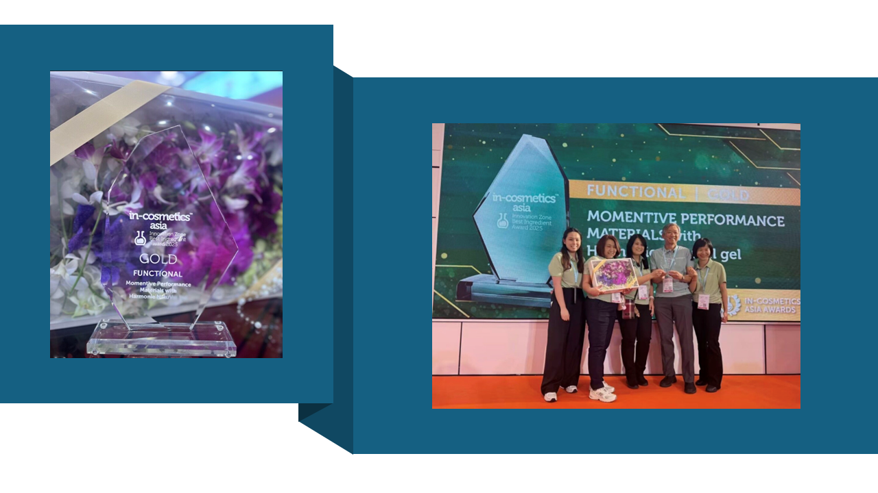 このたび、HARMONIE NatuVel gelが、アジア最大級の化粧品原料展示会 in-cosmetics Asia 2025 にて、Innovation Zone Best Ingredient Award(機能性原料部門)ゴールド賞を受賞しました。