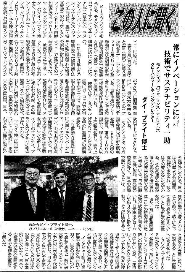 モメンティブのプレジデント兼最高経営責任者(CEO)PhDのサム・コンゾーンは、次のように述べています。「モメンティブの全持分がKCCコーポレーションのもとに移行し、プライベート・エクイティ的な考え方からより戦略的で長期的なアプローチに移行することでポジティブな影響が生まれることを、嬉しく思います。わたしたちは、KCCコーポレーションを単独株主として迎え、わたしたちの『人、テクノロジー、イノベーション』を通じた成長をサポートしてくれることを楽しみにしております」