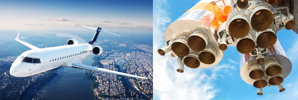 モメンティブの航空・宇宙用製品は、航空機のエンジン・機体・キャビン、人工衛星、ロケットなどの用途に幅広く採用され、高い評価を受けています。過酷な環境における耐熱性、耐低温性、耐オゾン性、電気絶縁性、低アウトガスなどの特性を有し、接着・シール・ポッティング・放熱用途において高い効果を発揮します。