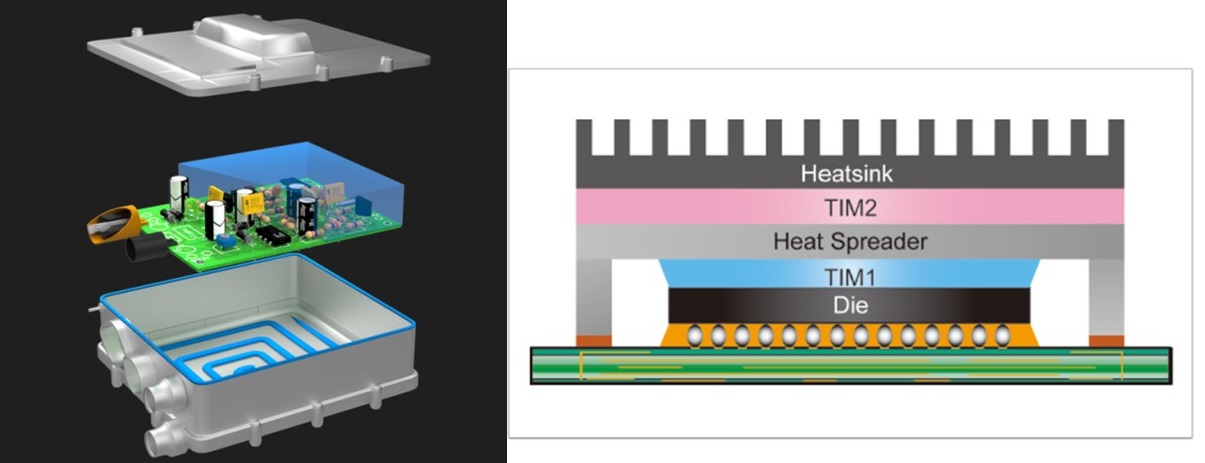 SilCoolシリーズ放熱用接着剤は、熱伝導性、 物理・化学的安定性に優れており、 薄膜塗布が可能であるため熱抵抗を低減する効果があります。 発熱体、ヒートスプレッダー、 ヒートシンクに隣接するサーマルインターフェース (TIM1 およびTIM2)として最適です。 基板、 各種デバイスの放熱接着、 シール用として縮合型接着剤(室温硬化型) も取り揃えています。