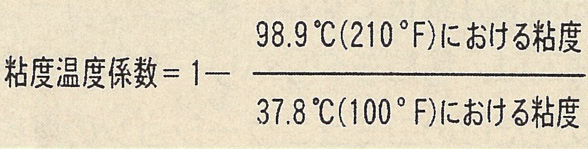 シリコーンオイルの温度による粘度変化を示し、下式により求められます。シリコーンオイルの粘度温度係数は鉱油などに比べて小さい、つまり温度が変化しても粘度変化は小さいことが特徴です。